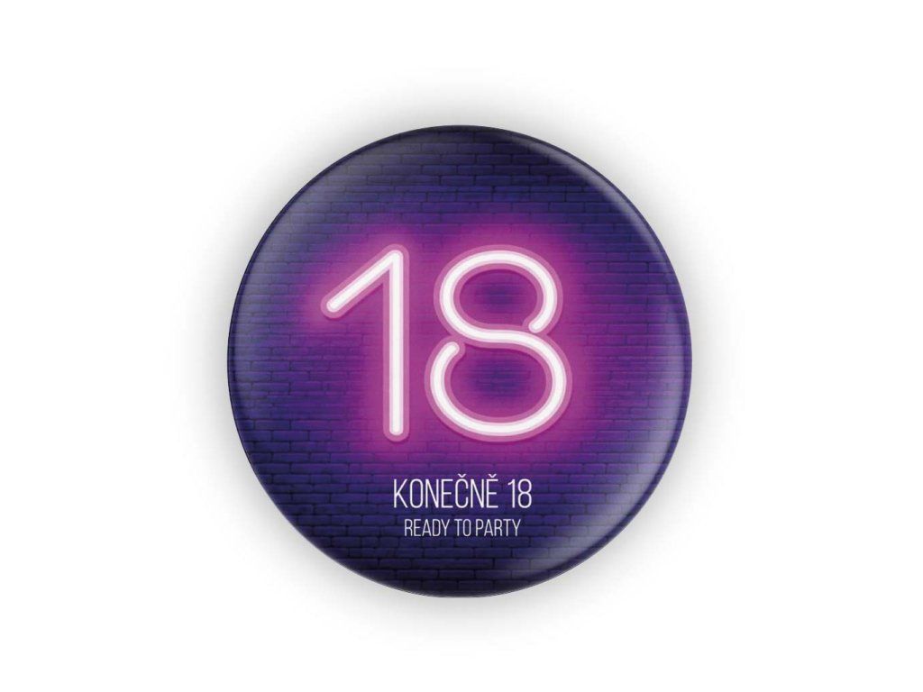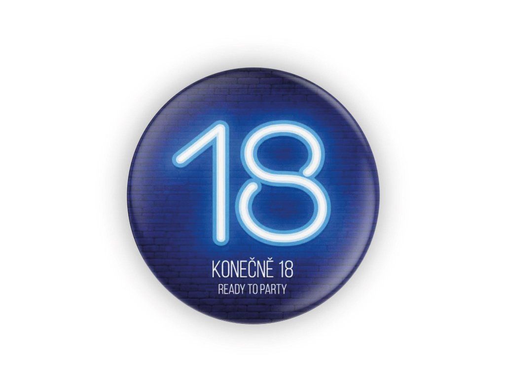 Placka 18 Ready to párty je stylový odznak pro oslavu osmnáctých narozenin. Skvěle se hodí na narozeninovou párty, jako doplněk pro oslavence i kamarády nebo jako originální památka na večer, kdy začíná dospělost.