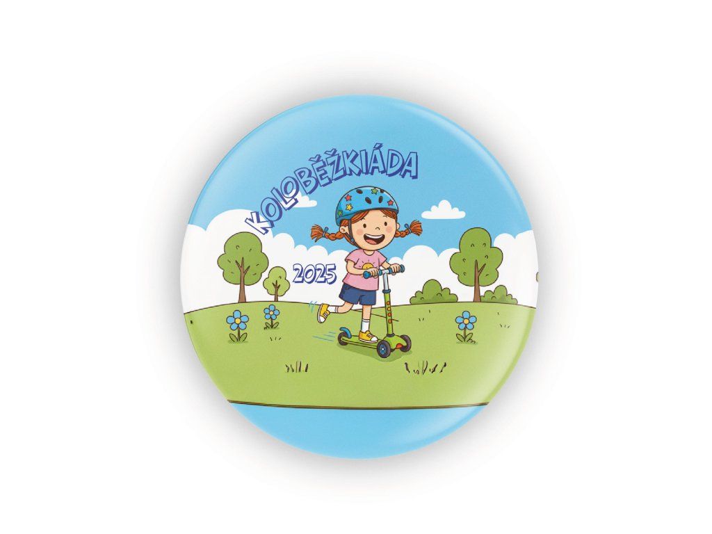 Placka Koloběžkiáda je veselou připomínkou sportovního dne plného pohybu, radosti a zdravé soutěživosti. Barevný motiv s malým závodníkem krásně vystihuje atmosféru školní koloběžkiády a nadšení z každé projeté trasy.
