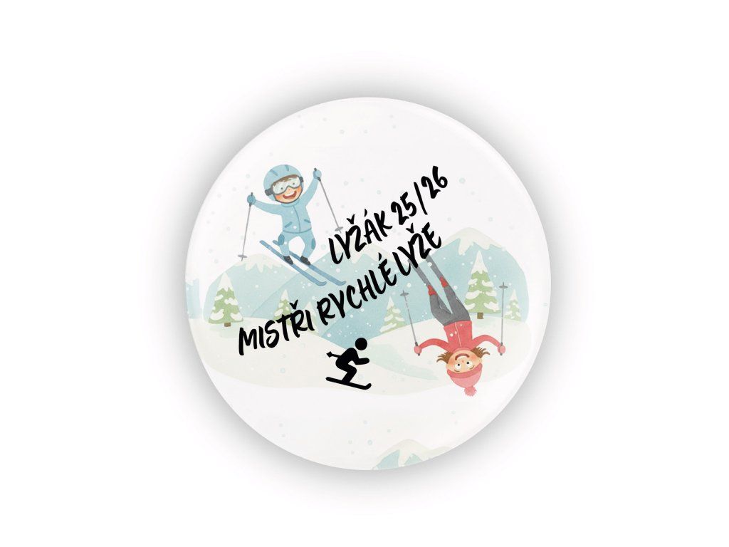 Placka Mistr rychlé lyže je veselým oceněním pro malé lyžaře, kteří se s odvahou pustili na svah. Hravý zimní motiv připomíná radost z pohybu, první obloučky i zasloužený potlesk v cíli.